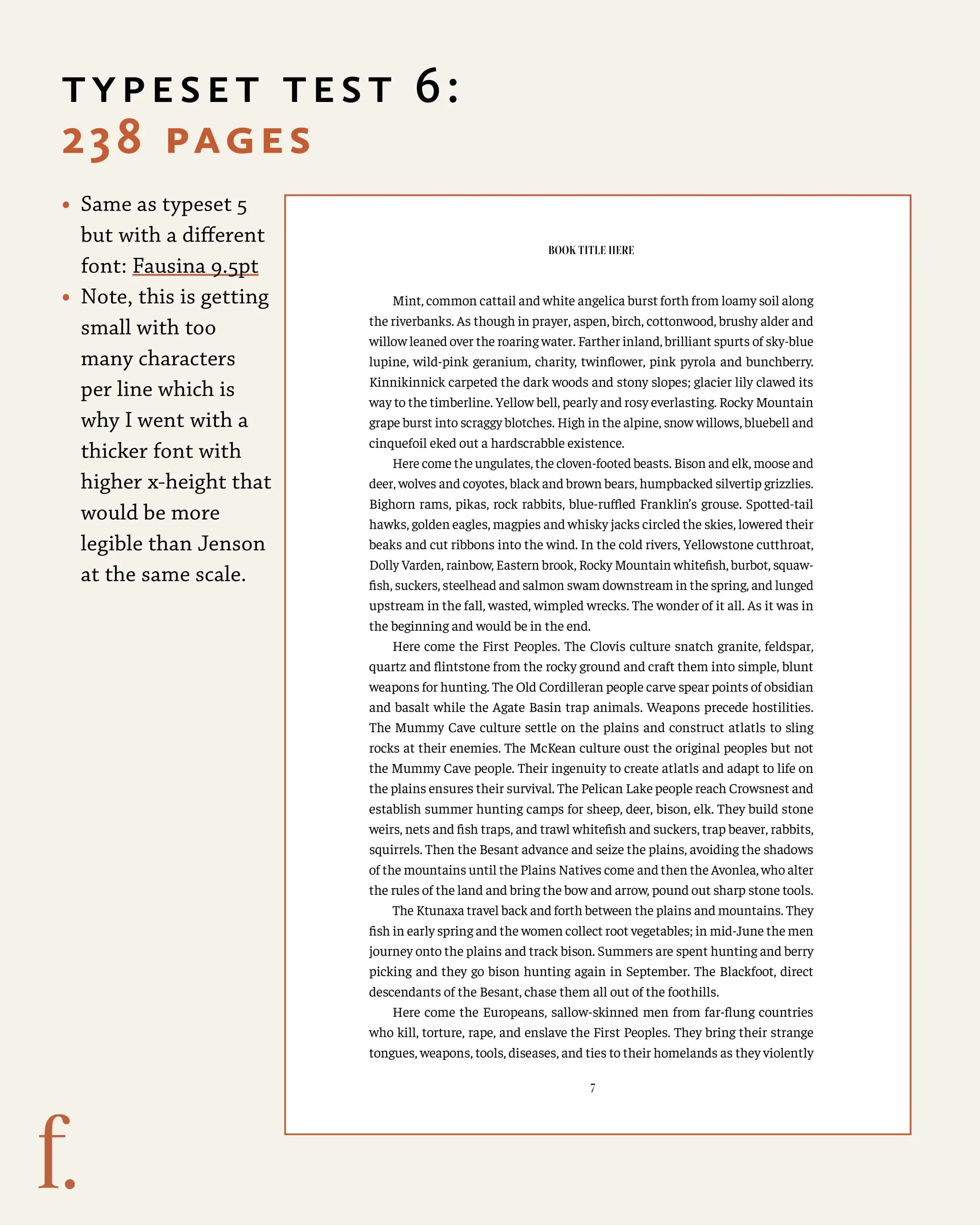 Note, this is getting small with too many characters per line which is why I went with a thicker font with higher x-height that would be more legible than Jenson at the same scale.